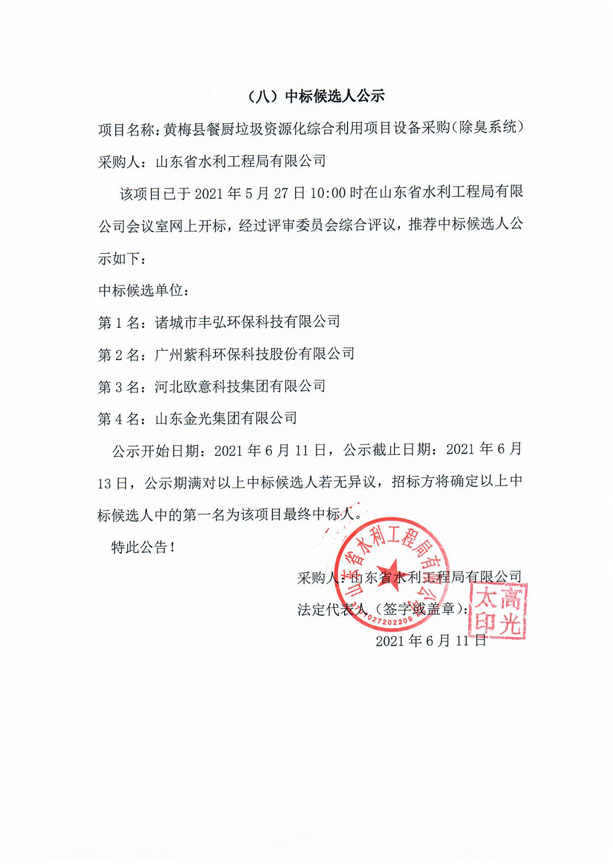 黃梅縣餐廚垃圾資源化綜合利用項目設備采購(除臭系統(tǒng))中標候選人公示