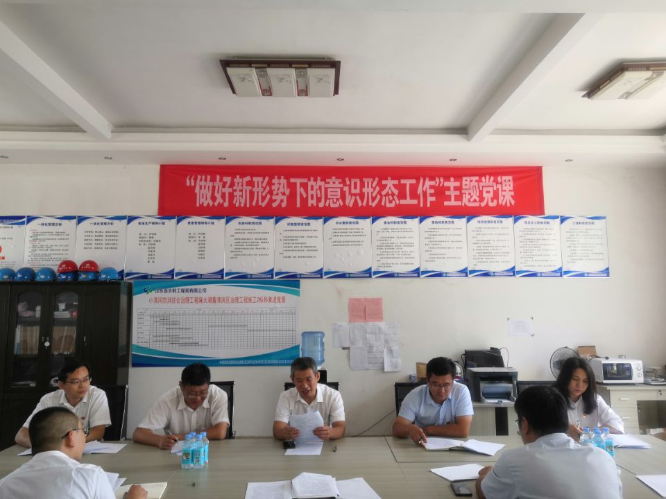 7月15日上午,在小清河防洪綜合治理工程濱州博興縣麻大湖蓄滯洪區(qū)治理工程項目部,黨委委員雷波同志為第七工程公司黨支部全體黨員上了一堂“做好新形勢下的意識形態(tài)工作”主題黨課。 雷波同志以什么是意識形態(tài)開始入 ...